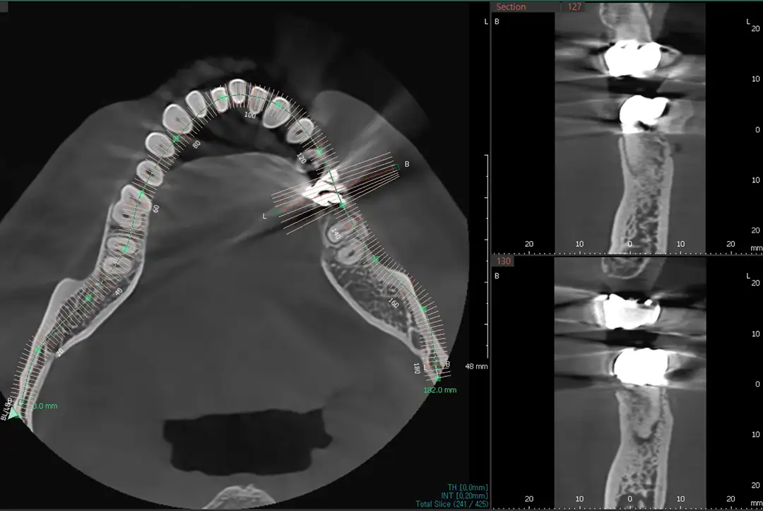3D 디지털 진단을 통해 컴퓨터상에서 모의 수술을 먼저 시행한 후, 3D 프린터로 제작된 맞춤형 가이드를 이용해 최적의 위치에 정확히 식립하는 네비게이션 임플란트. 네비게이션 임플란트가 가능한 경우 추가금 없습니다.