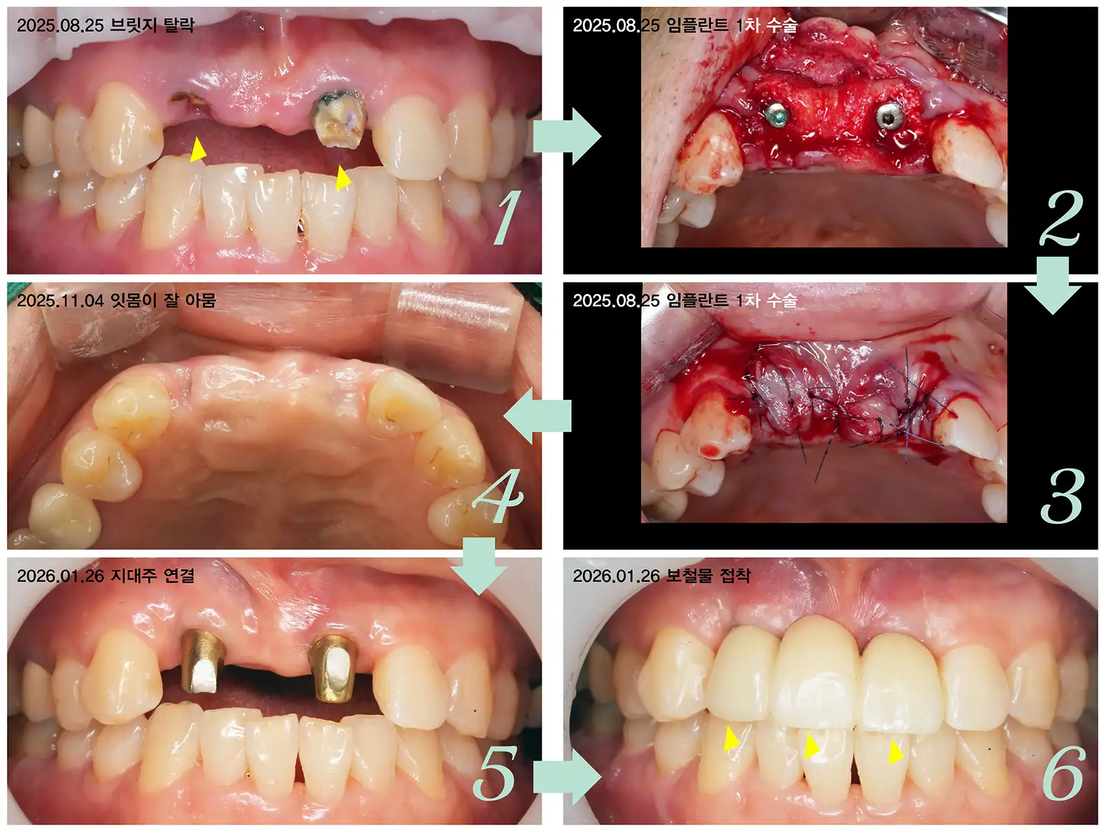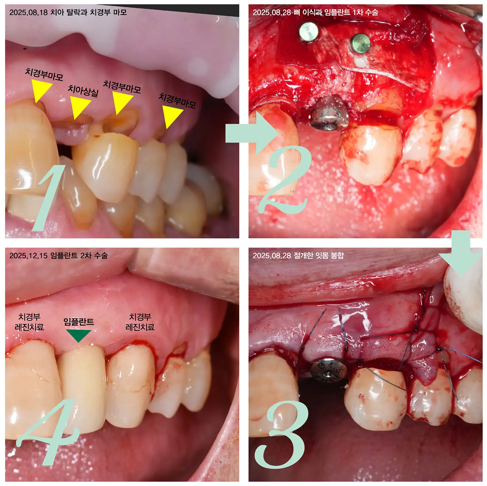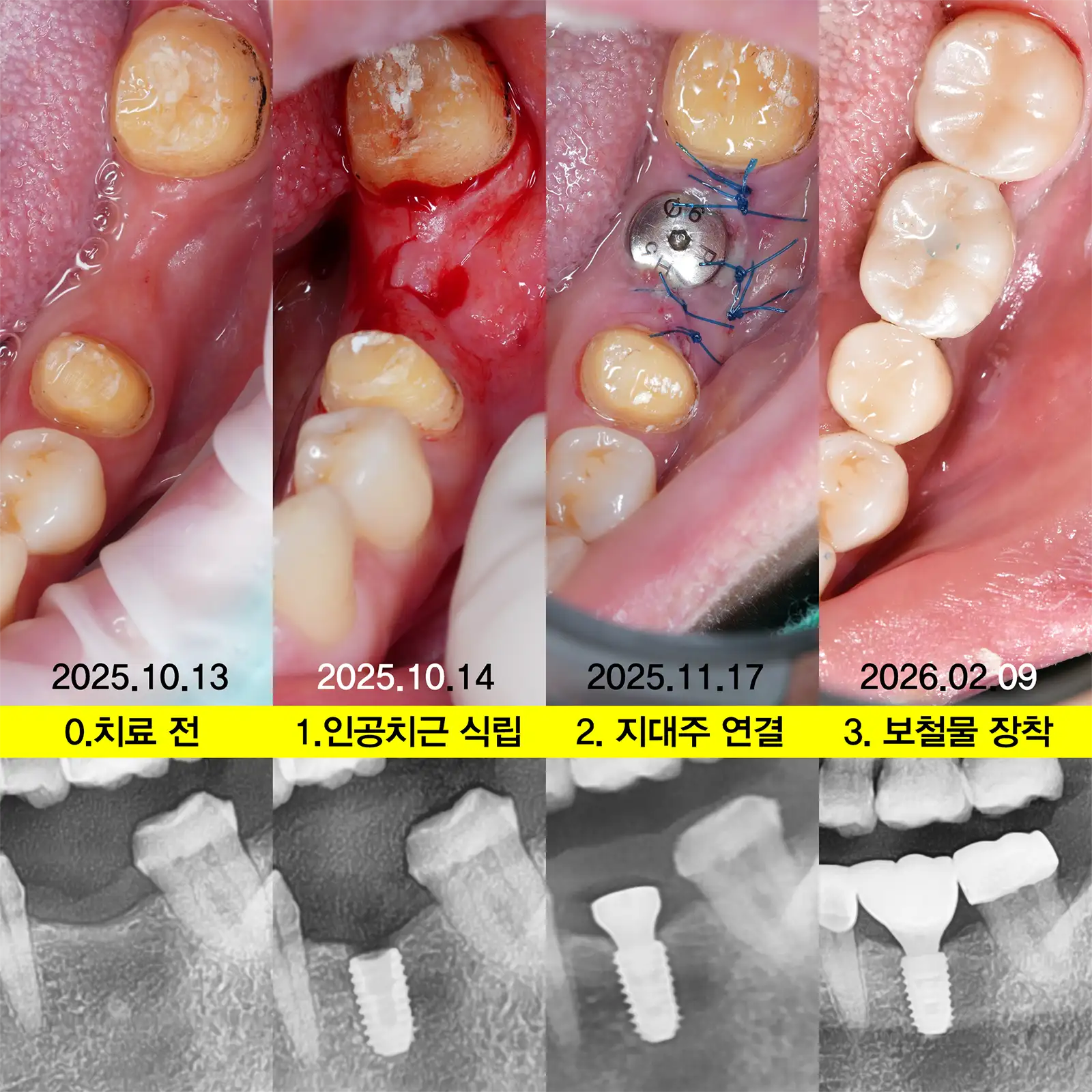 빠진 치아를 대체하기 위해 인체에 무해한 인공 뿌리(픽스쳐)를 턱뼈에 심고, 그 위에 치아 모양의 보철물(크라운)을 연결하여 본래 치아의 기능을 회복하는 수술입니다.