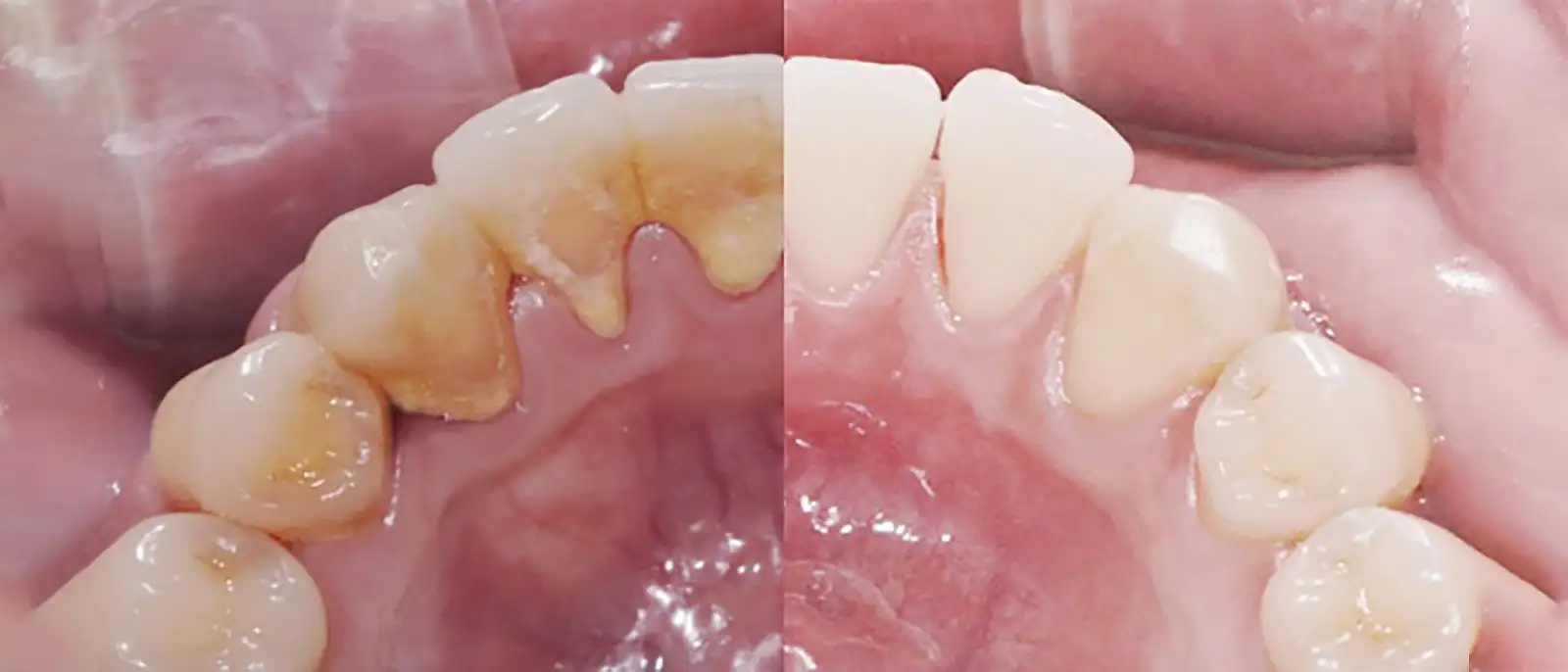 치석은 양치질로 제거되지 않습니다. 치과에서 스케일러로 깨뜨려서 떼어내야 합니다.