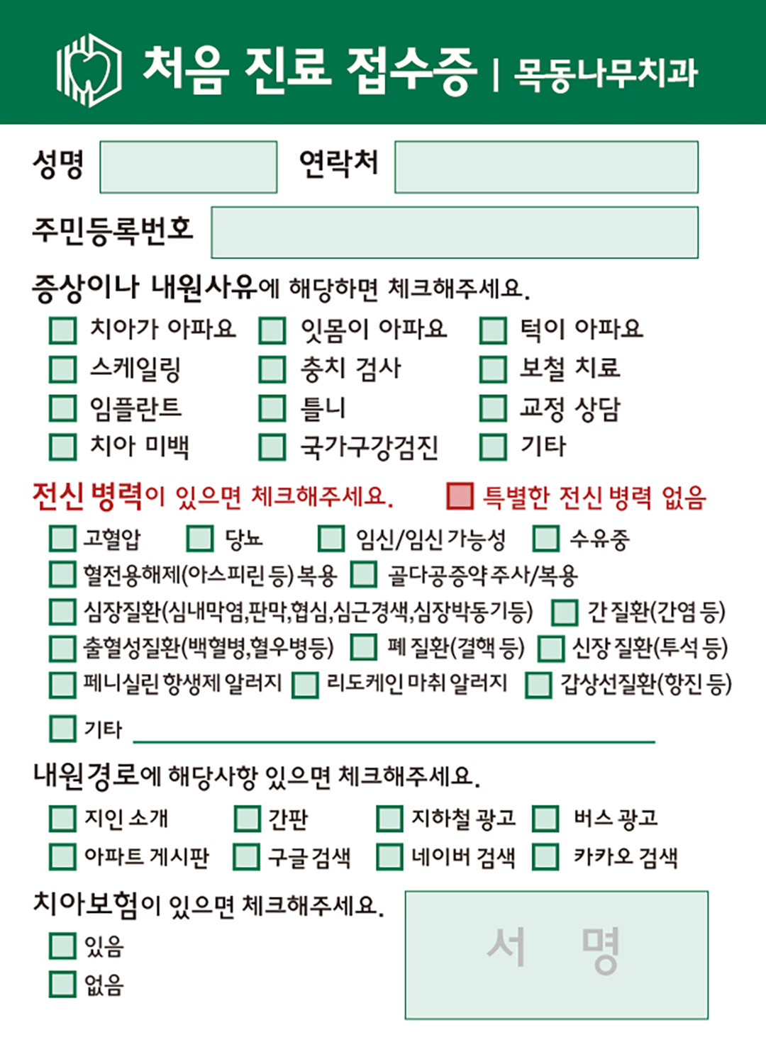 체어에서 진료도구를 놓을 때 사용합니다. 치아의 숫자와 이름이 적혀 있습니다(셋팅지에 치아 이름을 넣은 이유)