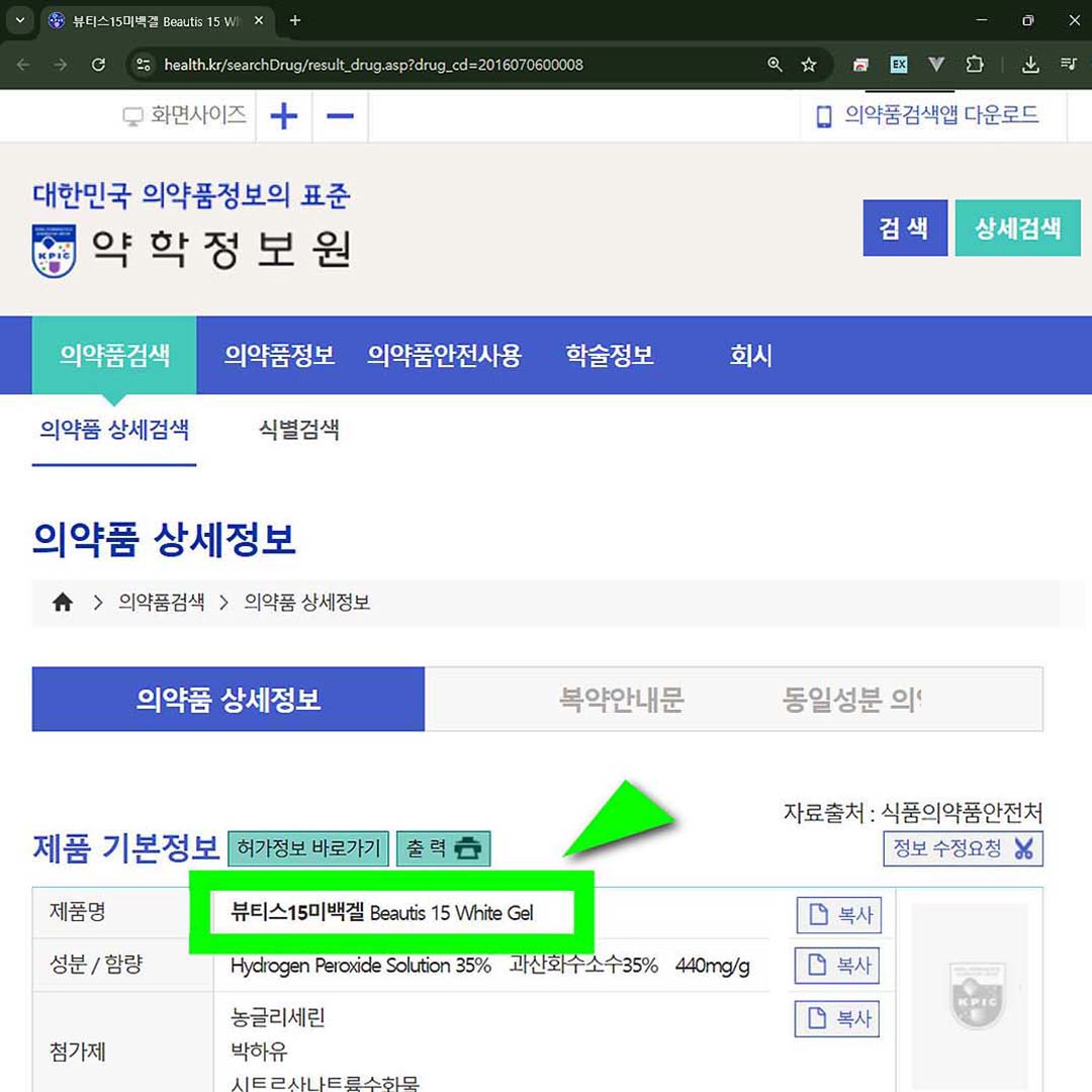 앞에서 설명했듯이 목동나무치과는 식약처 허가 제품인 뷰티스15 정품과 전용 뷰티스 라이트를 사용하여 안전하고 효과적입니다. 치아 미백을 받기 전에 꼭 '치아 미백제'로 허가 받은 제품인지 확인하시기 바랍니다.