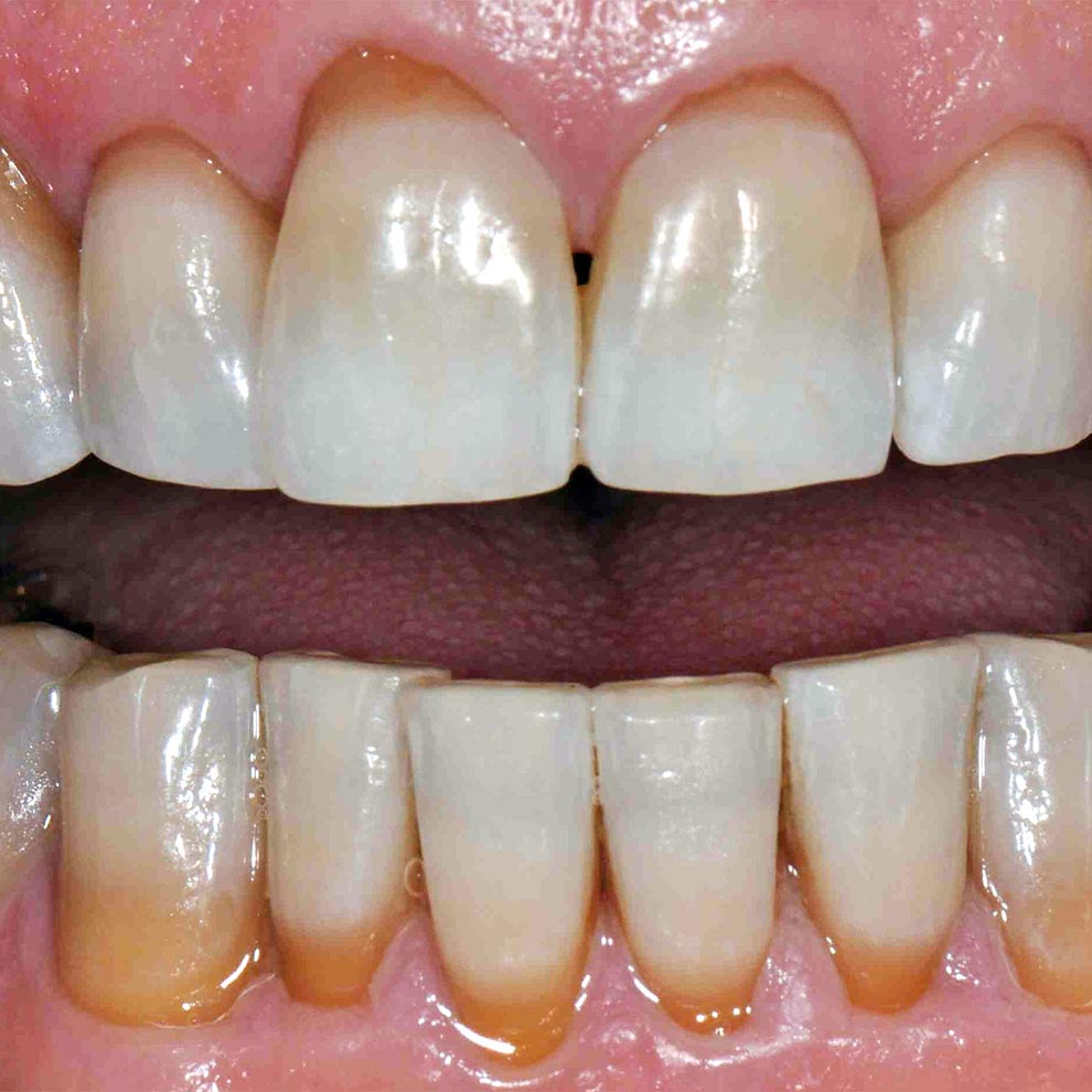 나이가 들면 얇아진 법랑질을 통해 짙어진 상아질의 색상이 투영되면서 치아는 전체적으로 어둡고 누런색을 띠게 됩니다.