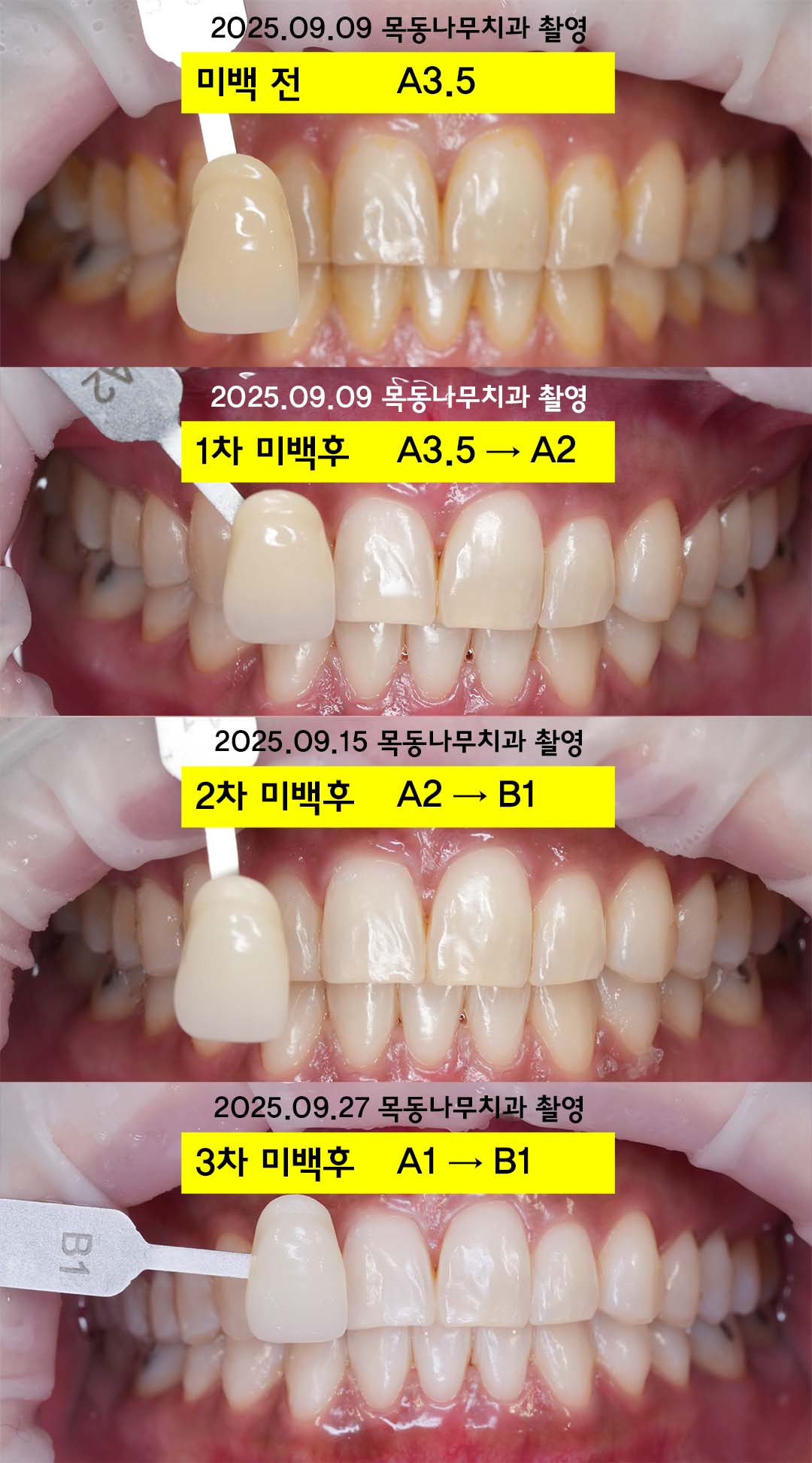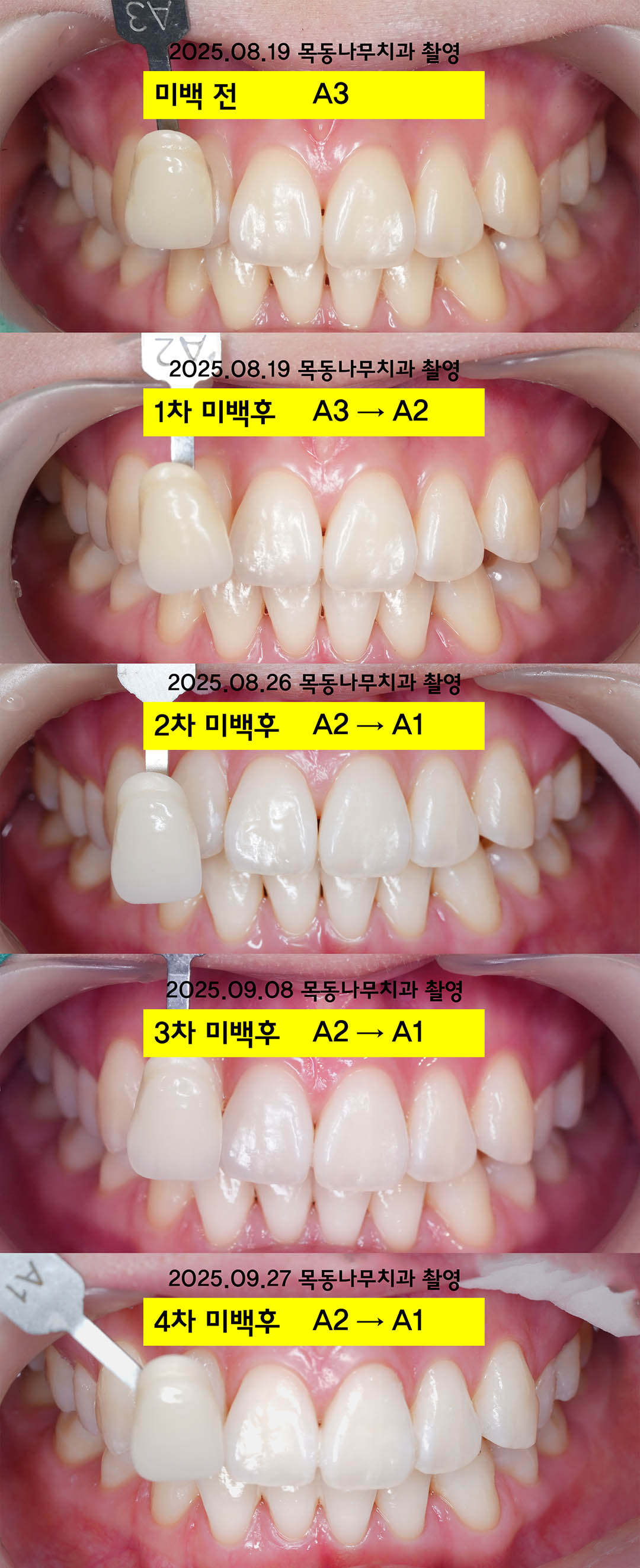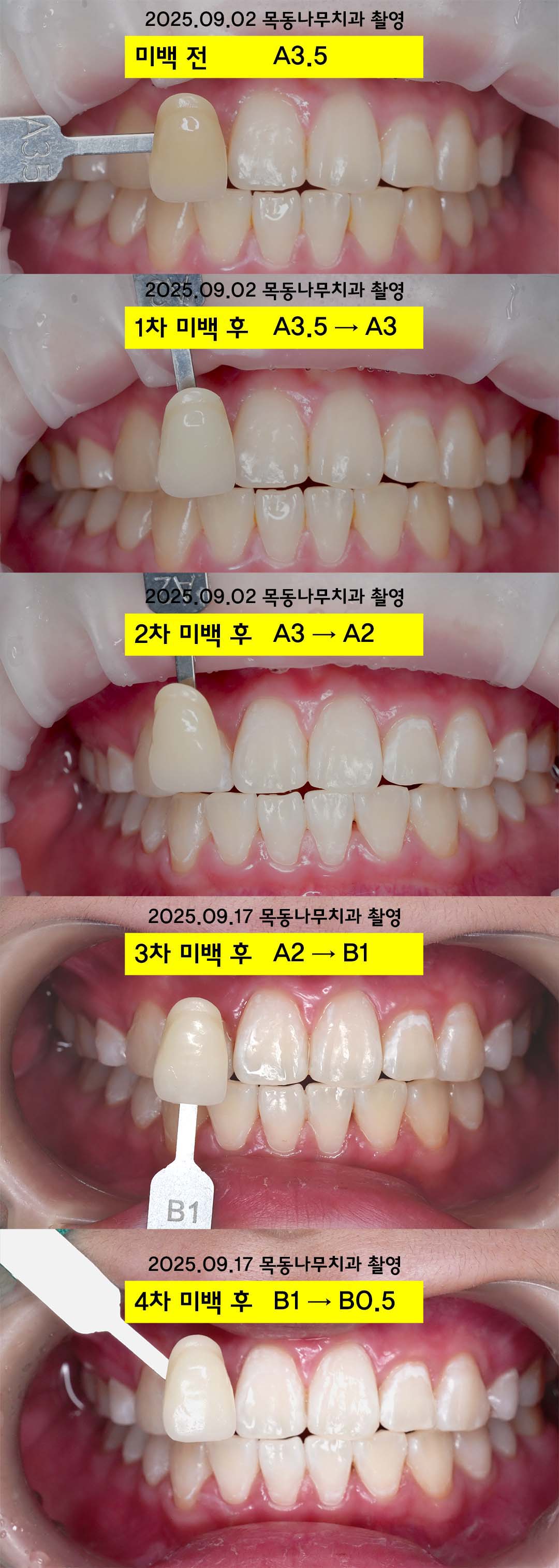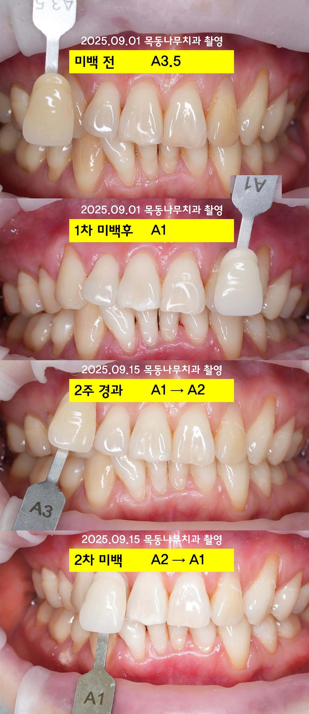 사례 1: 2회 미백을 통해서 A3.5에서 A1으로 (2025.09.01~)