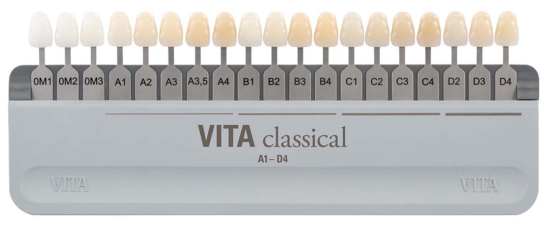 숫자는 1이 가장 밝고 4가 가장 어둡습니다. 최근에는 아주 밝게 표백된 치아를 위해서 0M1, 0M2, 0M3도 추가되었습니다.